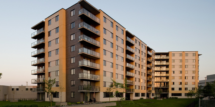 La phase 1 du projet Côté Ouest consistait en 142 condos d’une à trois chambres à coucher dans un immeuble de huit étages, achevé en 2008.